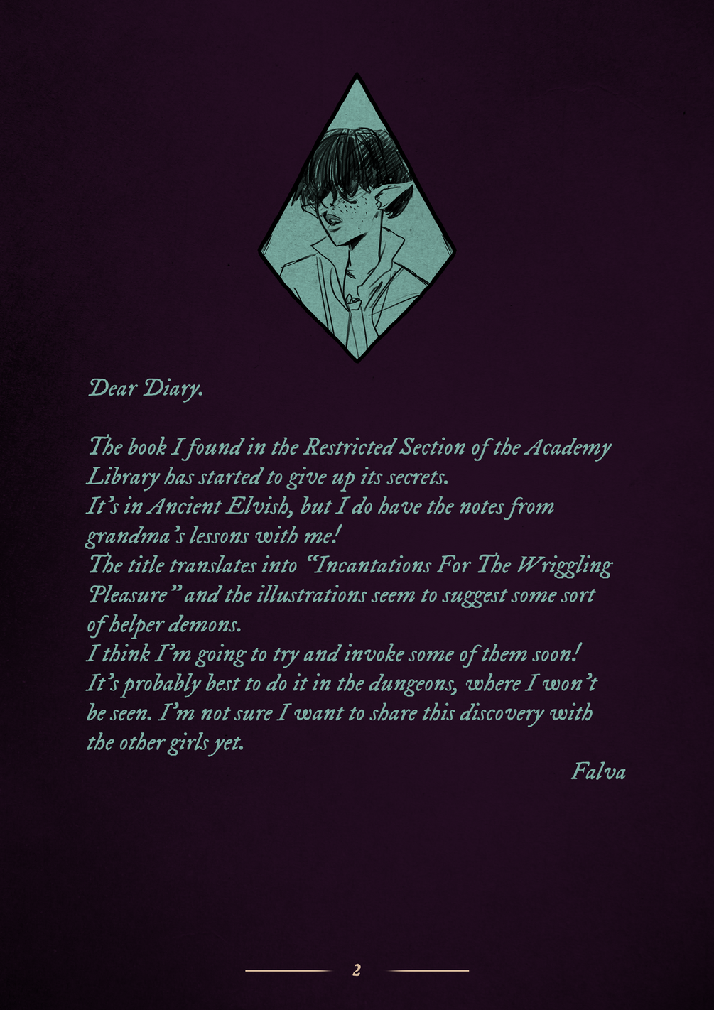 A story-artbook with a collection of tentacle-themed, adult illustrations set in a magical college and connected into a story by way of letters and diary entries.